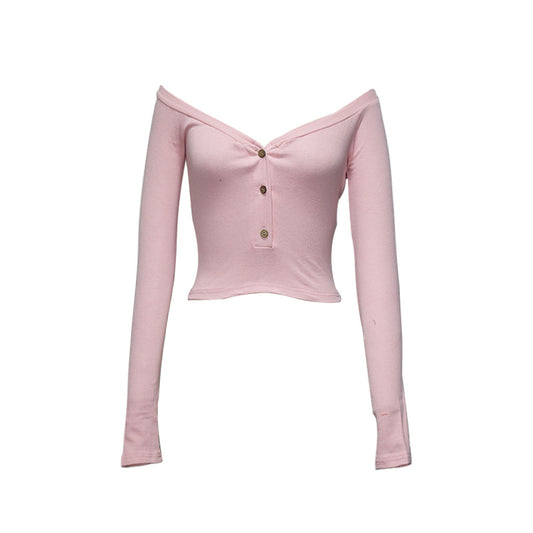 Long Sleeve T-shirt Top V-neck Fashionable Knitted